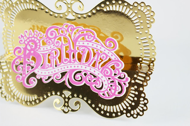 Step 1. Cut 2 base pieces from the Luxe Gold Cardstock using the Elaborate Birthday Die.